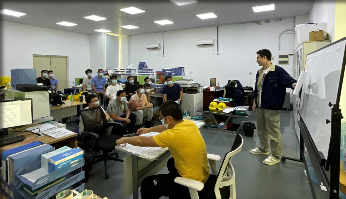 華謀咨詢(xún)?yōu)槟常揖咧圃煨袠I(yè))公司進(jìn)行現(xiàn)場(chǎng)看板驗(yàn)收及班組培訓(xùn)