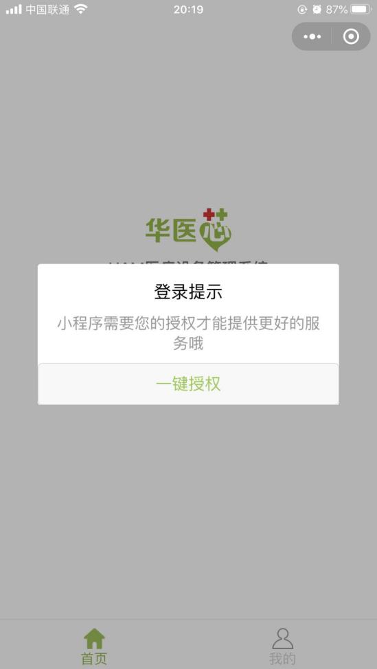 微信搜索“華醫(yī)芯”小程序并點(diǎn)擊進(jìn)入,第一次登陸需要進(jìn)行相關(guān)授權(quán)與認(rèn)證