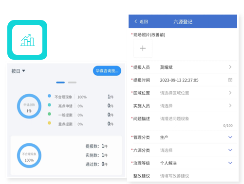 自動(dòng)生成跑冒滴漏清單,指定負(fù)責(zé)人制定處理對(duì)策,線上提交處理結(jié)果和驗(yàn)收,全程閉環(huán)跟蹤,支持整改成果分享展示