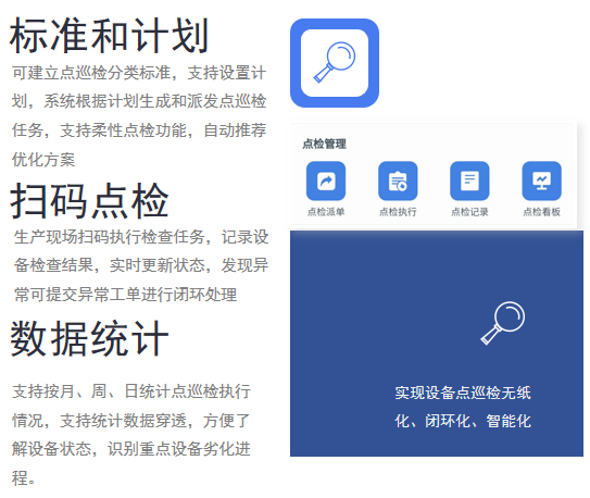支持設(shè)置點(diǎn)巡檢標(biāo)準(zhǔn)和計(jì)劃,系統(tǒng)自動(dòng)派單,現(xiàn)場(chǎng)掃碼執(zhí)行,漏單自動(dòng)統(tǒng)計(jì)和提醒