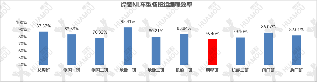 某汽車公司焊裝線,改善前,產(chǎn)線編程效率為76.4%