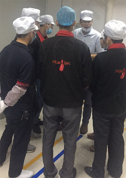 魅思新材料現(xiàn)場(chǎng)輔導(dǎo),吳老師導(dǎo)入改善提案活動(dòng),并到現(xiàn)場(chǎng)帶領(lǐng)大家挖掘提案,指導(dǎo)改善。