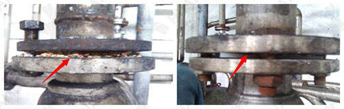 物料管路法蘭存在物料滲漏現(xiàn)象,經(jīng)過(guò)多次更換石棉圈,效果不理想。