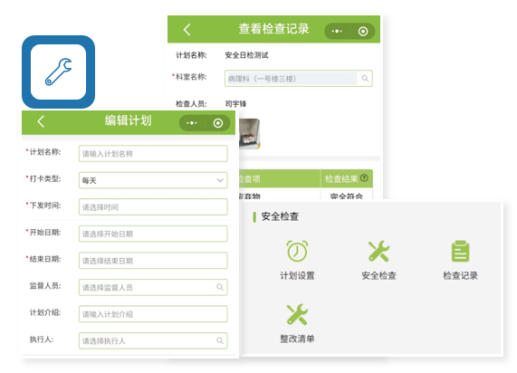 提供安全檢查計(jì)劃設(shè)置,系統(tǒng)在指定時(shí)間、指定位置對(duì)相關(guān)檢查負(fù)責(zé)人分配安全檢查任務(wù)