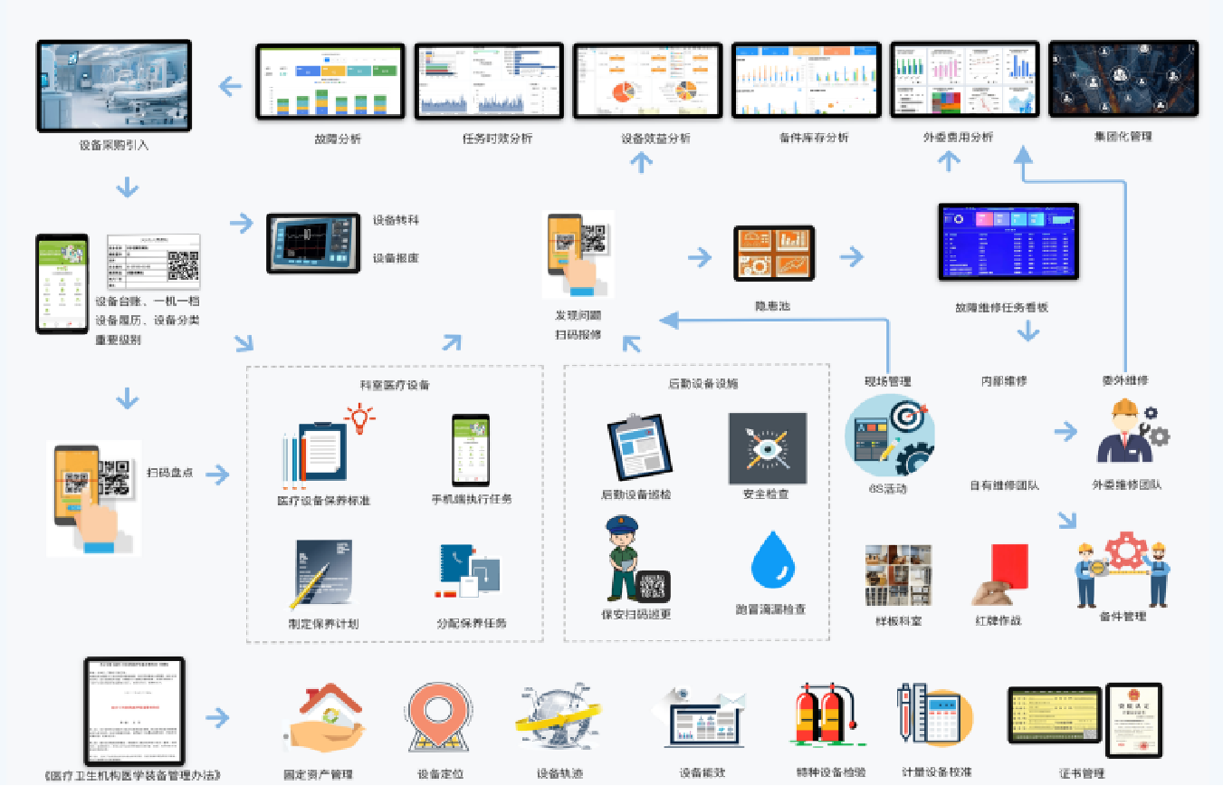 現(xiàn)場(chǎng)6S管理,全員改善QCC,固定資產(chǎn)生命周期管理,后勤設(shè)備管理,醫(yī)療設(shè)備管理等一站式采購(gòu)
