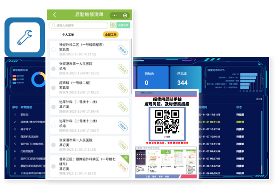 將日常大量的表格,如清掃點(diǎn)檢、報(bào)修單等搬到線上,實(shí)現(xiàn)現(xiàn)場(chǎng)業(yè)務(wù)表單無(wú)紙化,引導(dǎo)一線醫(yī)護(hù)人員掃碼執(zhí)行日常維保工作,實(shí)現(xiàn)三級(jí)保養(yǎng),降低突發(fā)故障發(fā)生率,扭轉(zhuǎn)事后維修的局面,降低備件消耗費(fèi)用,提升設(shè)備利用率。