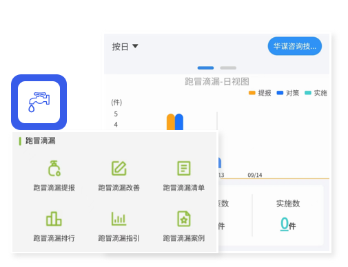支持按日、周、月統(tǒng)計(jì)提報(bào)、對(duì)策、實(shí)施數(shù)量和參與人均件數(shù)等關(guān)鍵指標(biāo),為推行跑冒滴漏治理提供完善的績(jī)效管理數(shù)據(jù)
