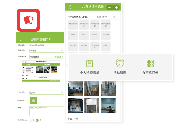 根據(jù)規(guī)則生成打卡任務(wù),九宮格樣式的維持打卡,維持情況拍照上傳