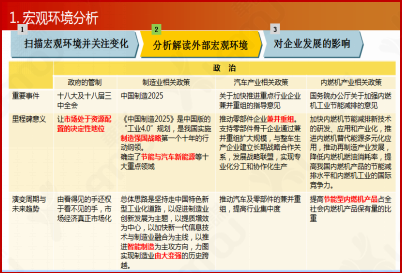 1: 制定業(yè)務(wù)規(guī)劃通過行業(yè)分析、競爭分析、客戶分析以及SWOT分析,為業(yè)務(wù)規(guī)劃環(huán)節(jié)制定核心策略和關(guān)鍵任務(wù)、測算業(yè)務(wù)目標(biāo)、分配資源提供依據(jù)
